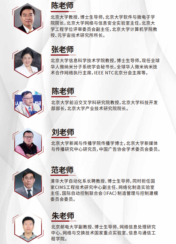 北京大学教授、博士生导师,北京大学软件与微电子学院院长,北京大学网络与信息安全实验室主任,北京大学工程学位评审委员会副主任,北京大学计算机学院教授、元宇宙技术研究所所长。