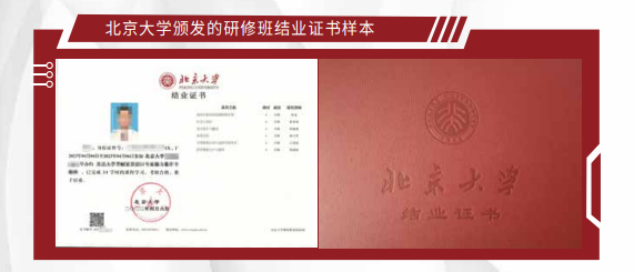 参加全部课程结束考核合格,由北京大学颁发该研修班结业证书。